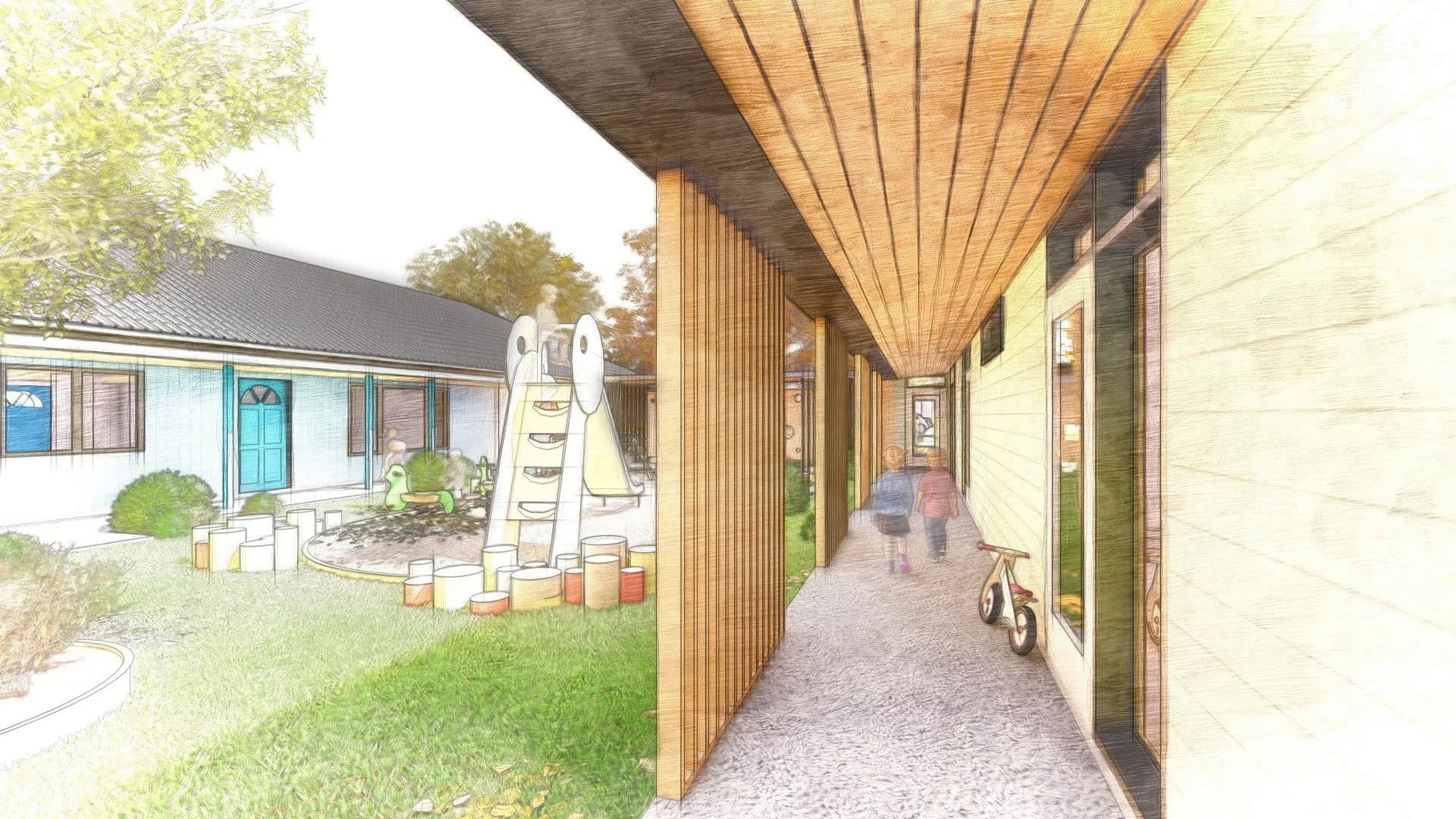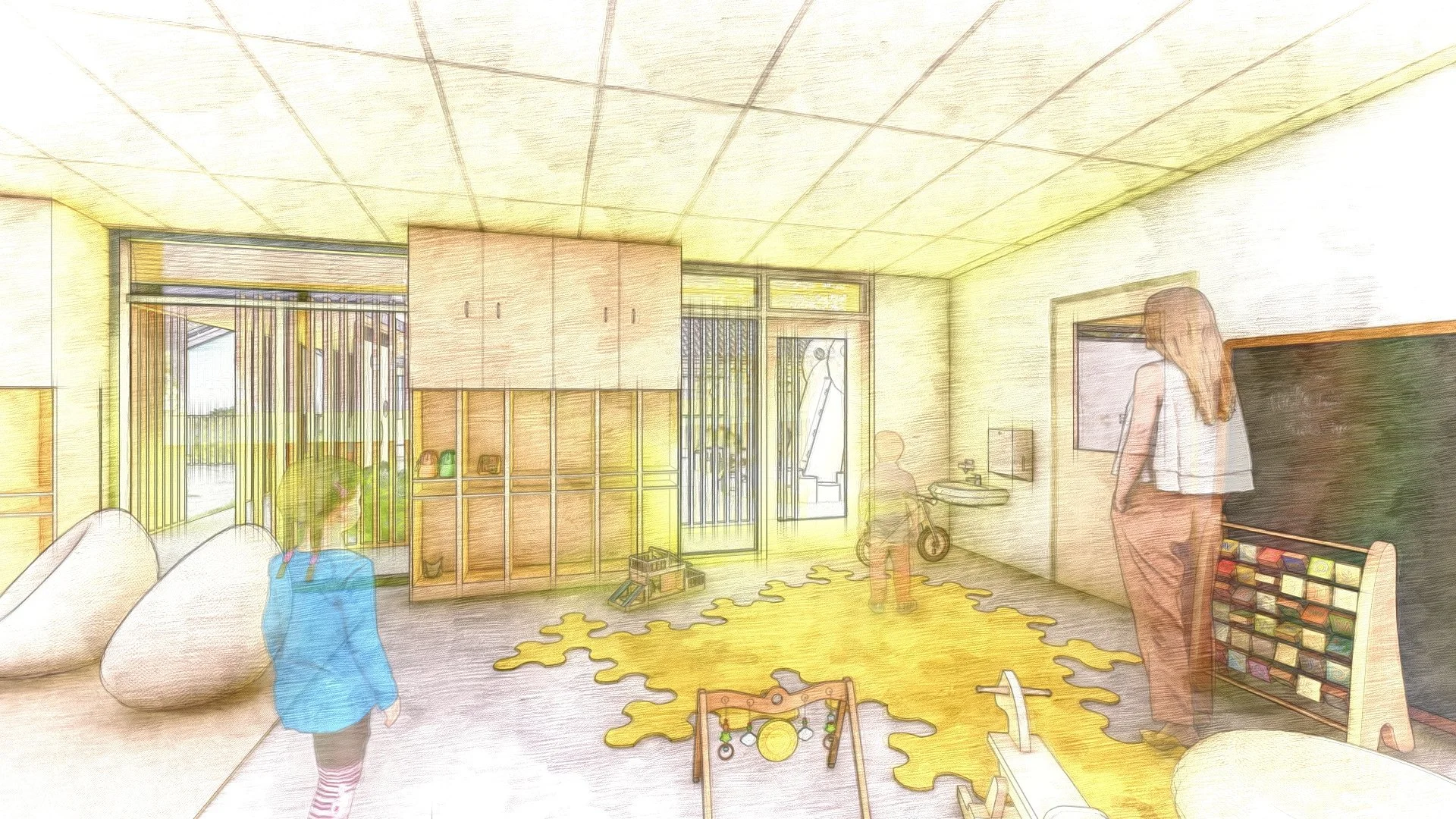 The new addition will be located to the north of the existing ELC, creating a sheltered play area protected from the harsh summer sun and winter wind, and shaded by existing mature trees. The addition accommodates a secure facility entrance, two modern preschool classrooms, offices, and a family-resource room. Modest renovations to the old school building take advantage of its smaller-scale rooms to accommodate younger toddlers and infants.